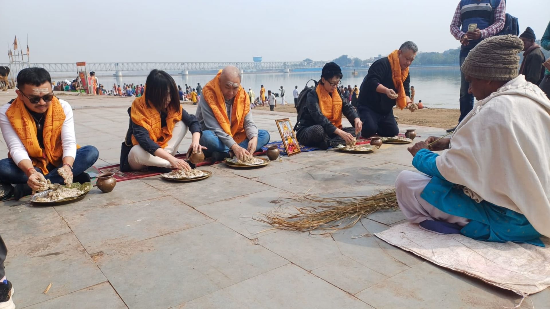 विश्व प्रसिद्ध गया धाम तीर्थ में मंगलवार को अद्भूत नजारा देखने को मिला। गया जी की पवित्र फल्गु नदी के देव घाट पर ताइवान से आए नागरिकों ने अपने पूर्वजों की आत्मा की शांति के लिए सनातन परंपरा का पालन करते हुए पिंडदान का अनुष्ठान किया।