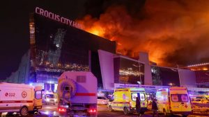 रूस के मीडिया संस्थानों में आई खबरों के मुताबिक रूसी राजधानी के पश्चिमी क्षेत्र स्थित क्रोकस सिटी हॉल में गोलीबारी हुई. कई अन्य रूसी मीडिया संस्थानों ने गोलीबारी की सूचना दी और कहा कि गोलीबारी के कारण संबंधित स्थल पर स्थित एक मॉल में आग लग गई. सोशल मीडिया पर पोस्ट किए गए वीडियो में इमारत के ऊपर काले धुएं का बड़ा गुबार उठता दिख रहा है. यह हमला तब हुआ जब क्रोकस सिटी हॉल में प्रसिद्ध रूसी रॉक बैंड ‘पिकनिक’ के एक संगीत कार्यक्रम में शामिल होने के लिए लोगों की भीड़ जमा थी. इस हॉल में 6,000 से अधिक लोग बैठ सकते हैं.