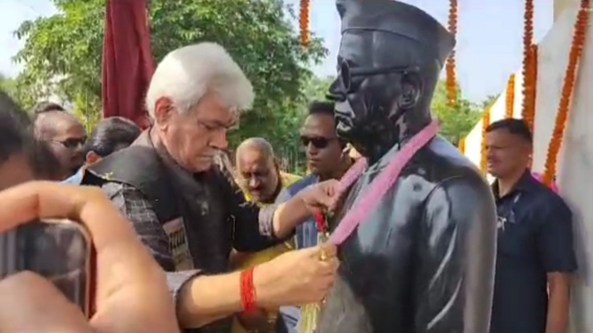 बिहार के प्रथम मुख्यमंत्री श्रीकृष्ण सिंह की प्रतिमा का अनावरण कर माल्यार्पण करते उप राज्यपाल मनोज सिन्हा